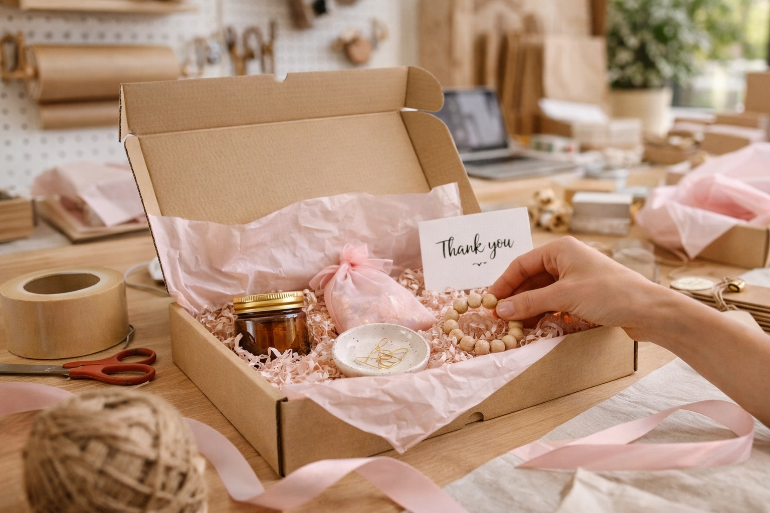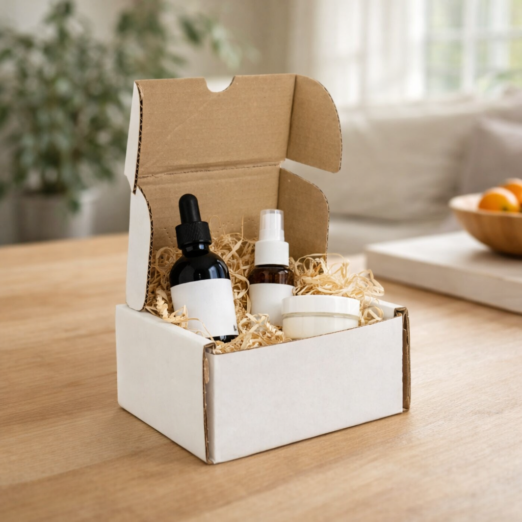 A repeatable system for monthly shipping. It combines right-sized boxes, inserts, sealing, labelling and a simple unboxing experience.